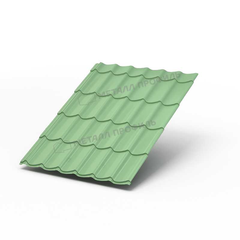 Профиль характеризуется классической волнообразной формой, имитирующей натуральную черепицу. Высота волны составляет 24 мм, а шаг – 350 мм, что обеспечивает оптимальную жесткость и простоту монтажа. Толщина металла 0,5 мм гарантирует баланс между прочностью и легкостью, позволяя использовать материал на крышах с различными уклонами. Оливковый цвет подчеркивает рельеф, создавая эффект объемности и элегантности.