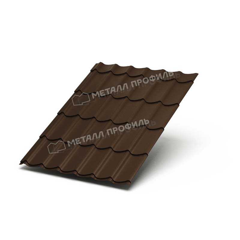 Металлочерепица с профилем Монтеррей от Металл-Профиль представляет собой надежный кровельный материал толщиной 0,45 мм. Покрытие VikingMP® в цвете RR 32 (темно-коричневый) обеспечивает долговечность и эстетичный вид. Идеально для крыш жилых и коммерческих зданий, сочетает прочность стали с матовой текстурой для защиты от коррозии и УФ-излучения.