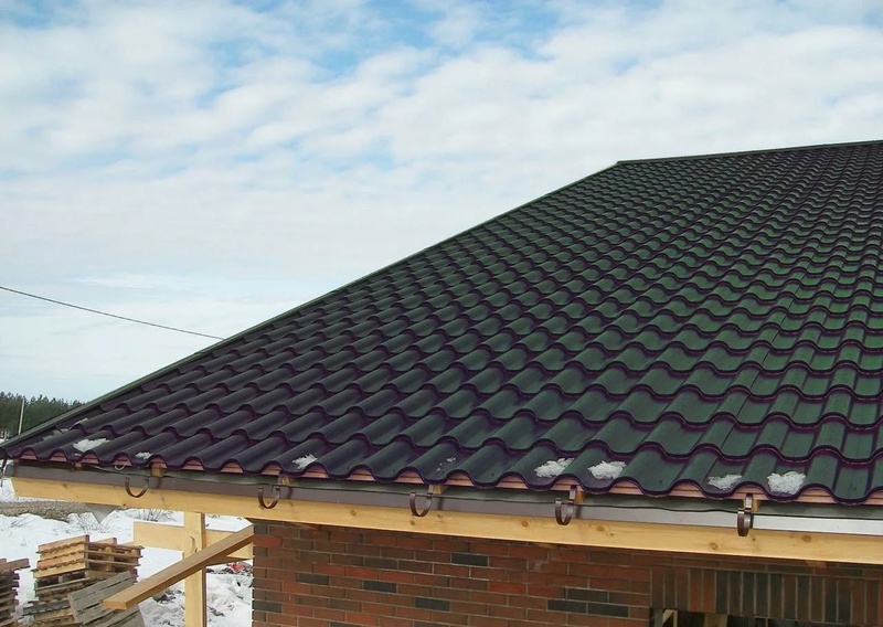 Установка металлочерепицы производится путем крепления листов кровли к каркасу здания с использованием специальных крепежных элементов.